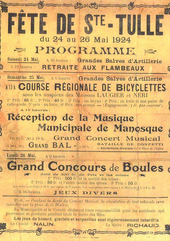 - maillot du vainqueur de l'Étoile de Bessèges, évènement international accueilli à Ste-Tulle en 2002, dédicacé par Poulidor, Anglade, Kobler et par le commentateur bien connu Daniel Mangeas