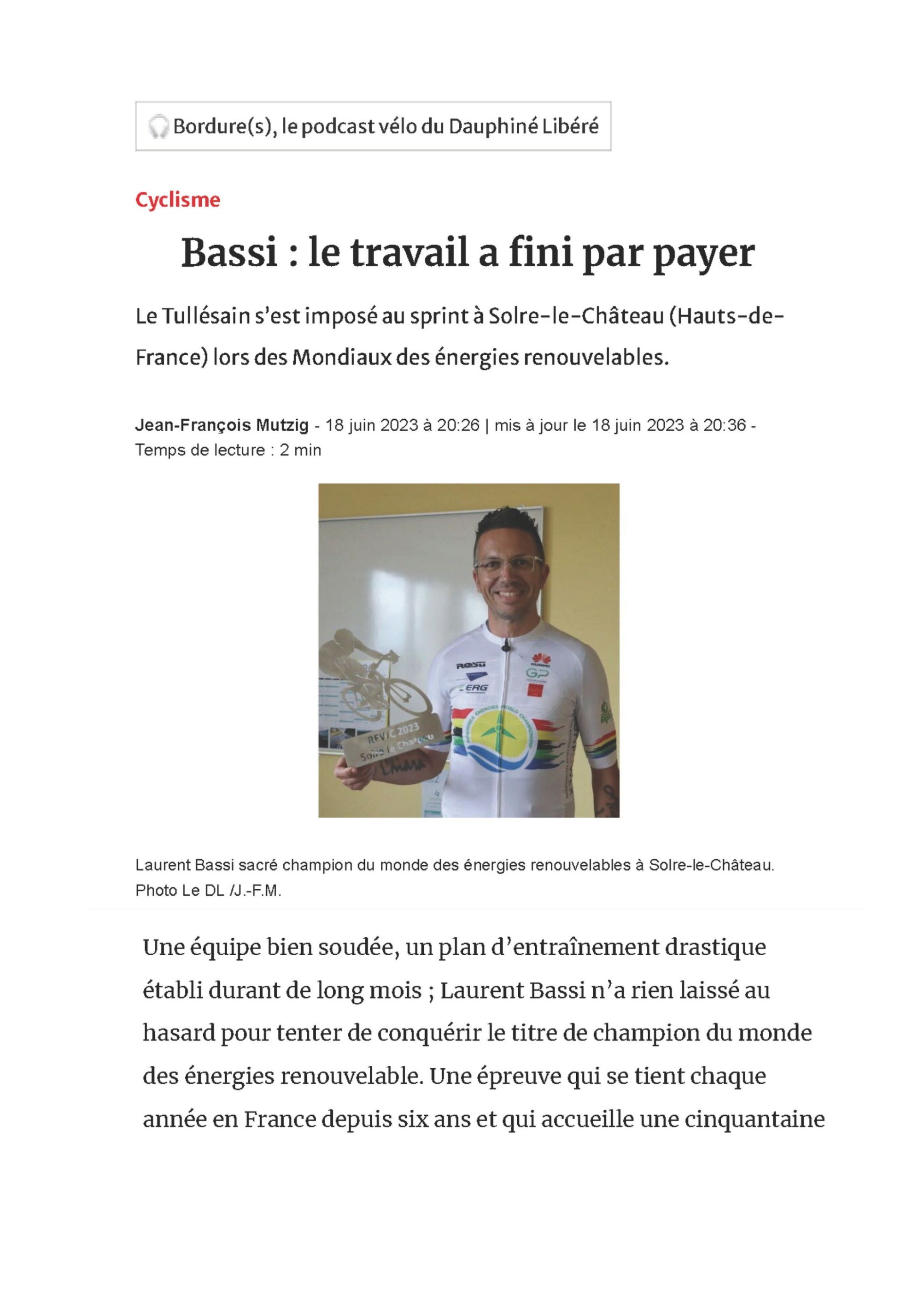 Laurent Bassi remporte une éclatante victoire